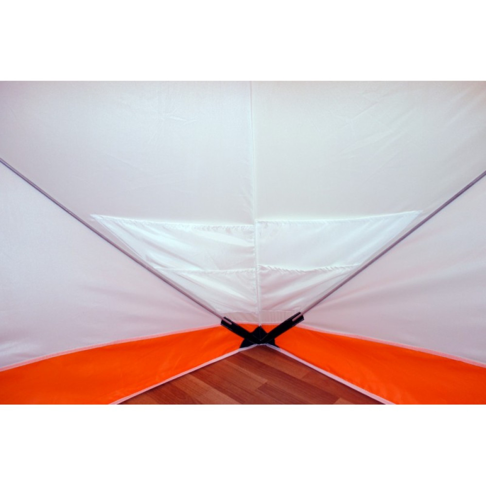 Призма Премиум имеет форму куба, что позволяет рыбакам рационально использовать пространство. Сверлить лунки теперь можно прямо в установленной палатке. Габариты ПРИЗМЫ позволяют делать это без каких-либо неудобств. В отличие от классических палаток ПИНГВИН, палатка ПРИЗМА более ветроустойчива. Благодаря своей конструкции палатка выдерживает порывистый ветер. Легко ставится одним человеком в любую погоду. ПРИЗМА ПРЕМИУМ имеет увеличенные размеры. Теперь в ней могут свободно разместиться четыре человека и комфортно рыбачить как днем, так и ночью! Для удобства сделано два входа. Входы сделаны не по диагонали, как принято на всех импортных аналогах, а напротив друг друга, что позволило оптимизировать внутреннее пространство. Входы выполнены в угловом варианте и снабжены застежкой – липучкой, как на наружном, так и на внутреннем тенте. Так же входы снабжены специальной зимней молнией, которая снаружи имеет защитную планку, предотвращающую от замерзания. Палатка выполнена в светлых тонах и имеет яркую крышу и пороги, а так же светоотражающие элементы по периметру, что позволяет увидеть палатку в ночное время. На наружной юбке имеются оттяжки для крепления порогов при отсутствии снега. Внутренне пространство тоже стало намного удобнее. Сверху в тенте установлены 2 кармана-сетки для легких вещей, в дополнение к четырем сдвоенным карманам по периметру, 2 форточки, выполненных с применением прозрачной морозостойкой ПВХ-пленки (полностью съёмные). Тент выполнен из ткани Оксфорд 240, которая выдерживает столб воды не менее 2000 мл.