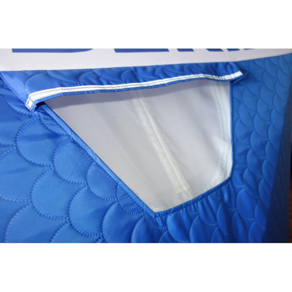 Дышащие вставки, играющие важнейшую роль в обеспечении микроклимата внутри палатки, вынесены на боковые грани. Этим решением полностью закрылся вопрос водонепроницаемости крыши, которая сейчас изготавливается без стыков и швов из единого полотна ткани, общая площадь дышащих вставок достигает 4 000 кв.см. Четыре окна из морозостойкой прозрачной пленки обеспечивают панорамный обзор на водоеме.