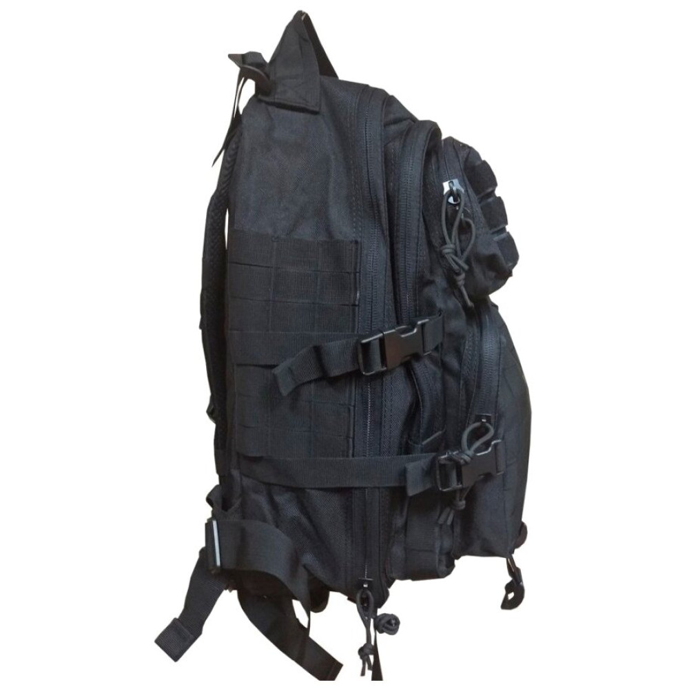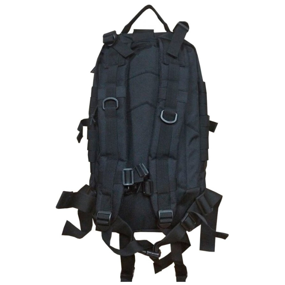 Благодаря нашитым с внешней стороны стропам и петлям системы MOLLE рюкзак можно дополнить необходимым снаряжением.