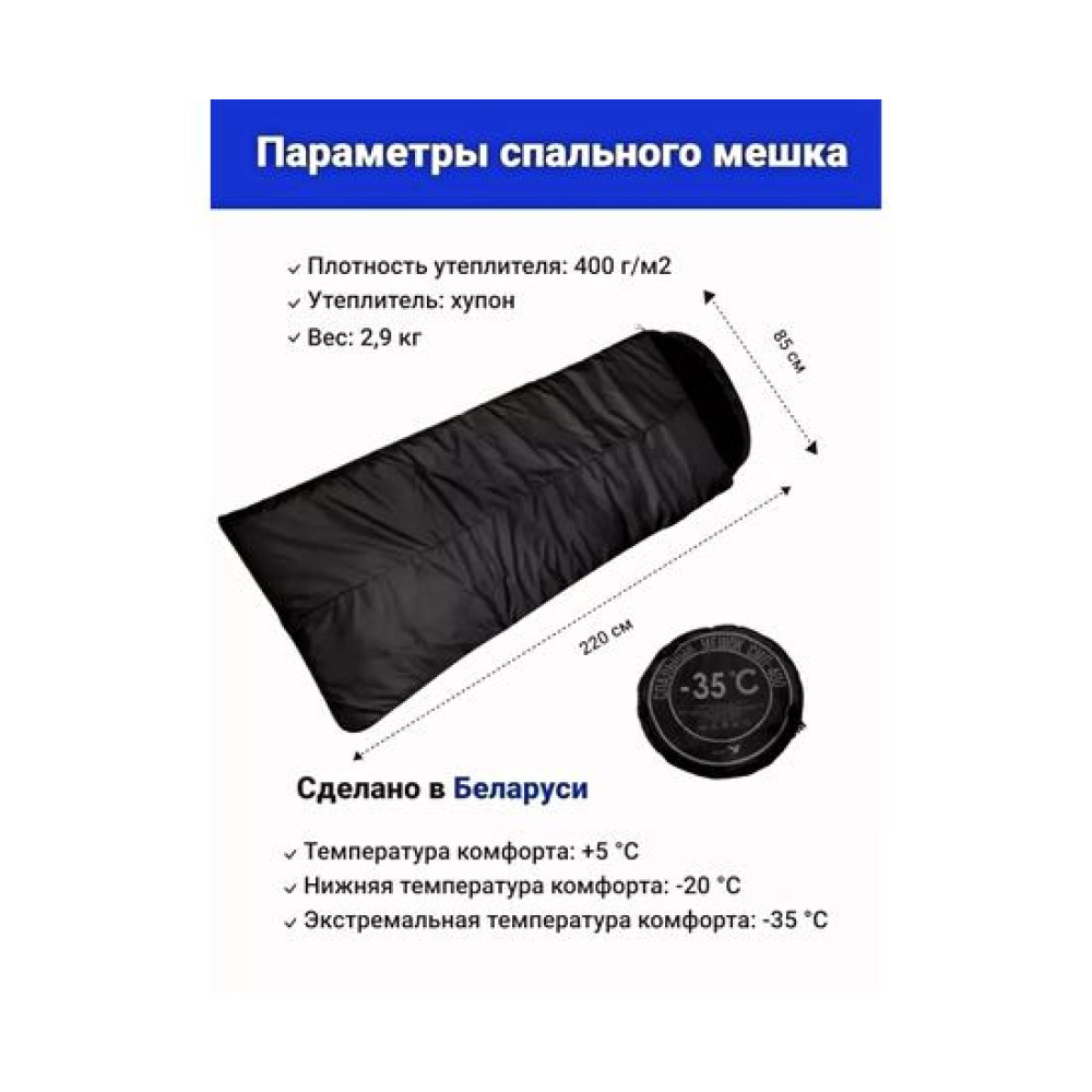 Ø 85 см Вес: 2.1 кг.Верхняя температура комфорта +5 °C;Нижняя температура комфорта -15 °C;Экстремальная температура -25 °C