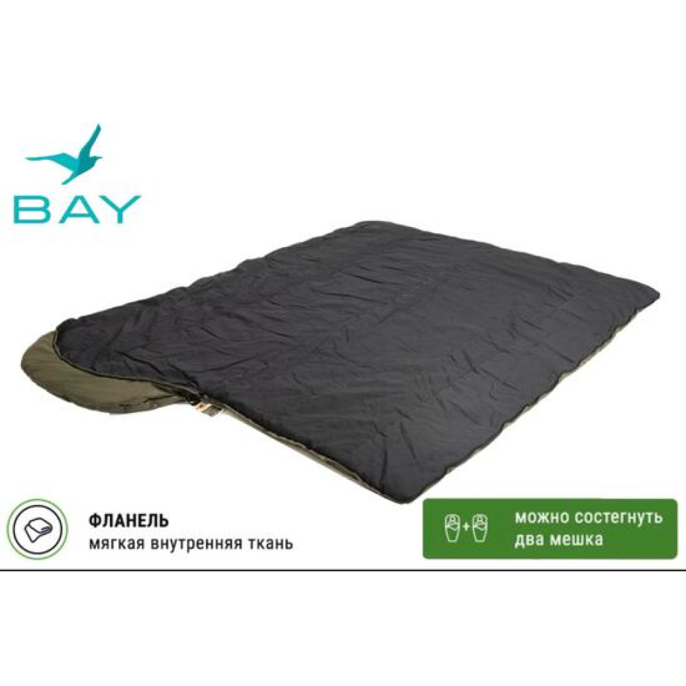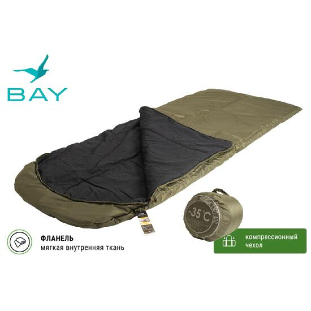 Снаружи спальный мешок BAY изготовлен из oxford 210 PU, внутренний материал 100% хлопок, он гигиеничен и комфортен в использовании