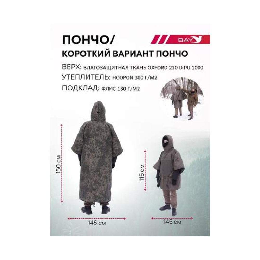 Пончо влагозащитный утепленный, длинный