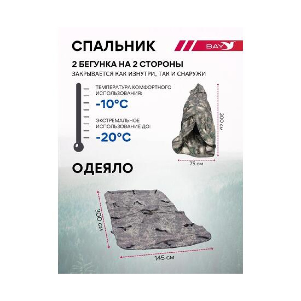 Спальник 3м*0.75см, 2 бегунка на 2 стороны, закрывается как изнутри, так и снаружи