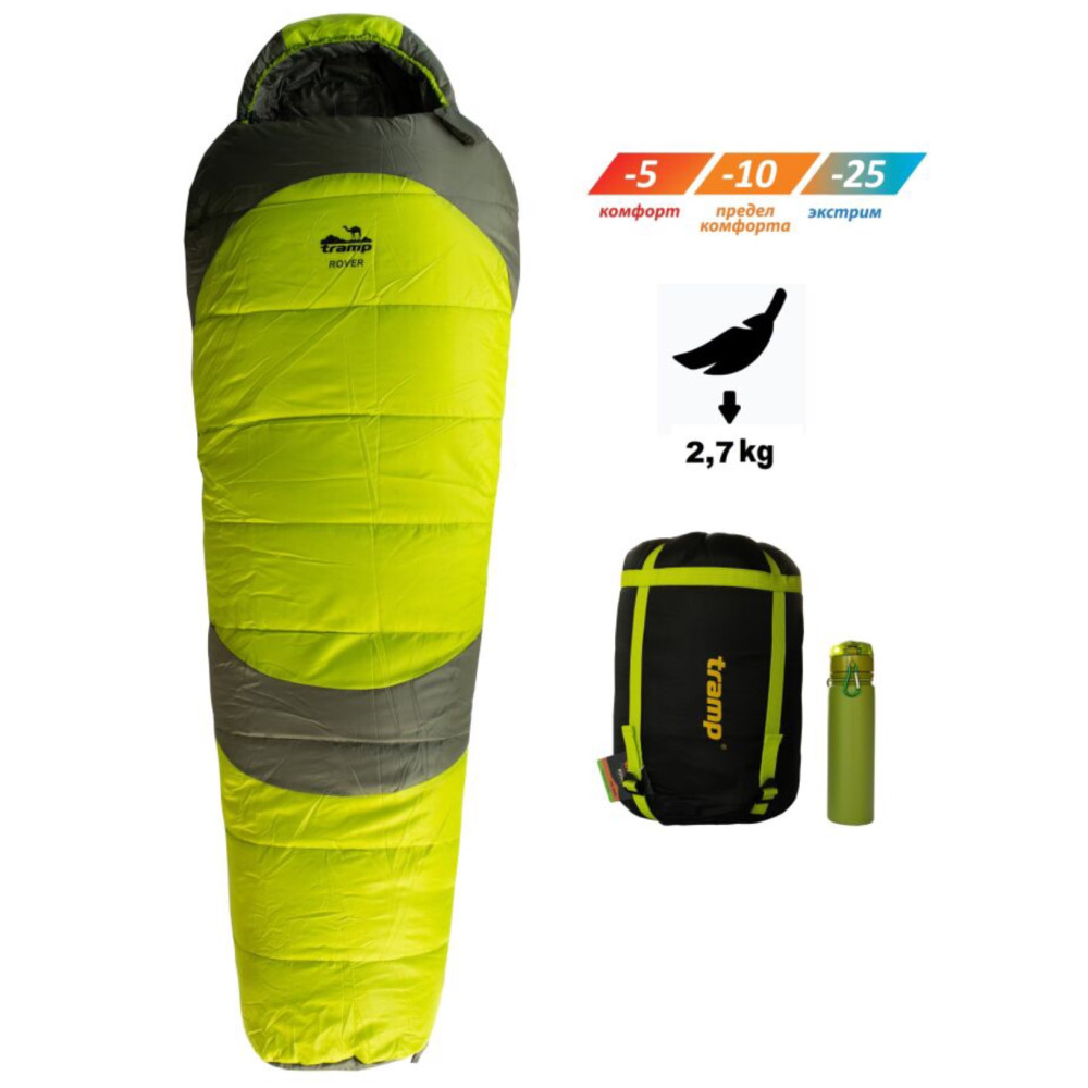 Спальный мешок Трамп Rover Long оливковый/серый подойдет для сложных пеших походов, где важен не только температурный режим, но и небольшой вес и малый транспортный объем. За счет анатомической формы кокона уменьшен вес и габариты спальника.