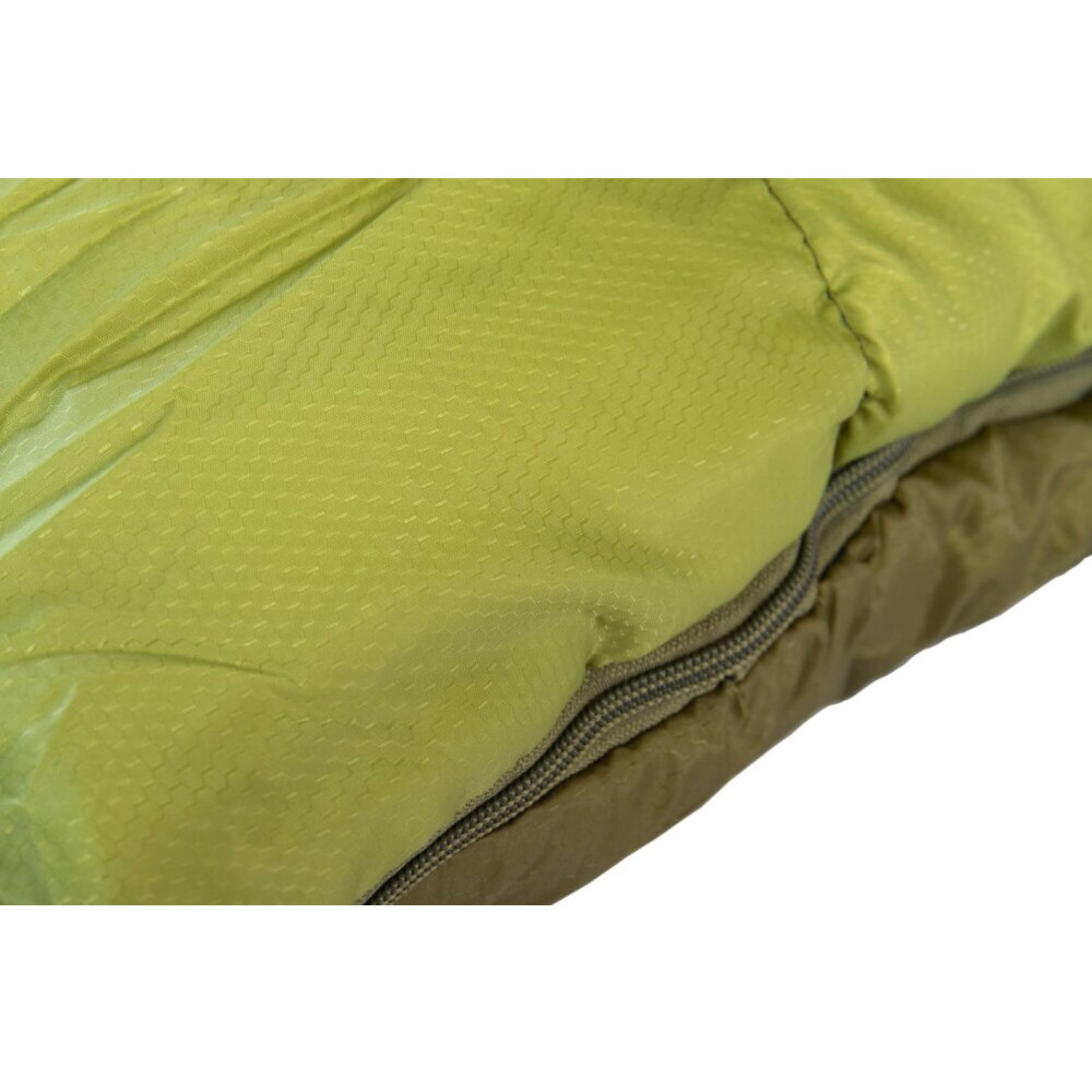 Утеплённая планка вдоль молнии не пропускает холодный воздух внутрь спального мешка.