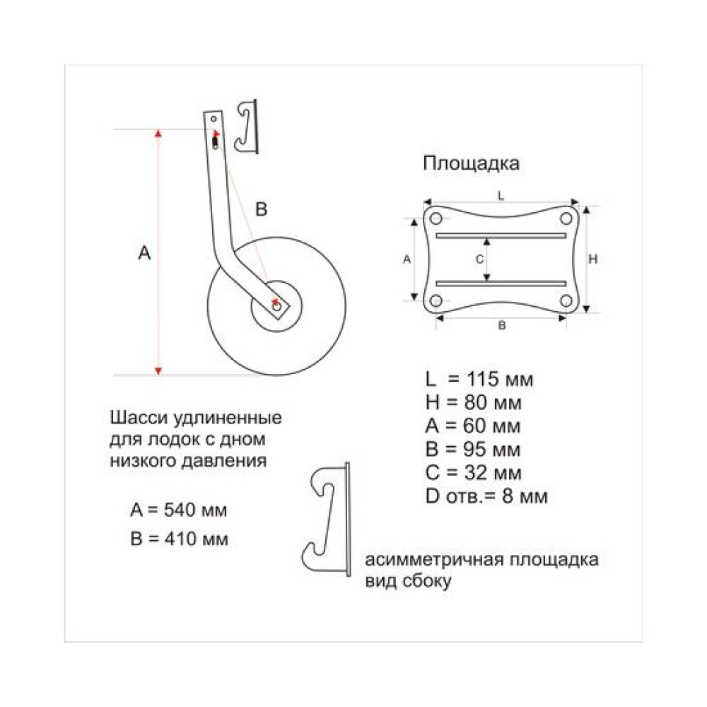 Шасси разработаны для лодок с дном низкого давления типа "Ротан", "Флагман", "Солар", "Аэро", "Компас" и другие
