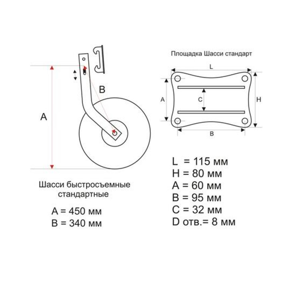 Транцевые шасси "Быстросъемные стандартные" рекомендуются для лодок с жестким дном длиной от 3,5 м