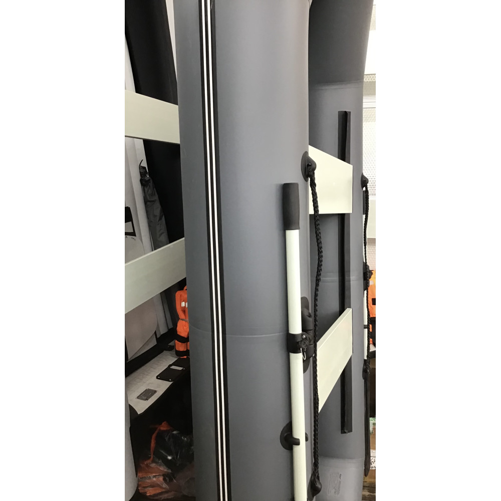 Лодка укомплектована стеклокомпзитными веслами (в модели РВ 190Т в комплекте гребки), которые жестко укреплены в уключинах и фиксируются на борту баллонов с помощью защелки (кроме РВ 190Т).