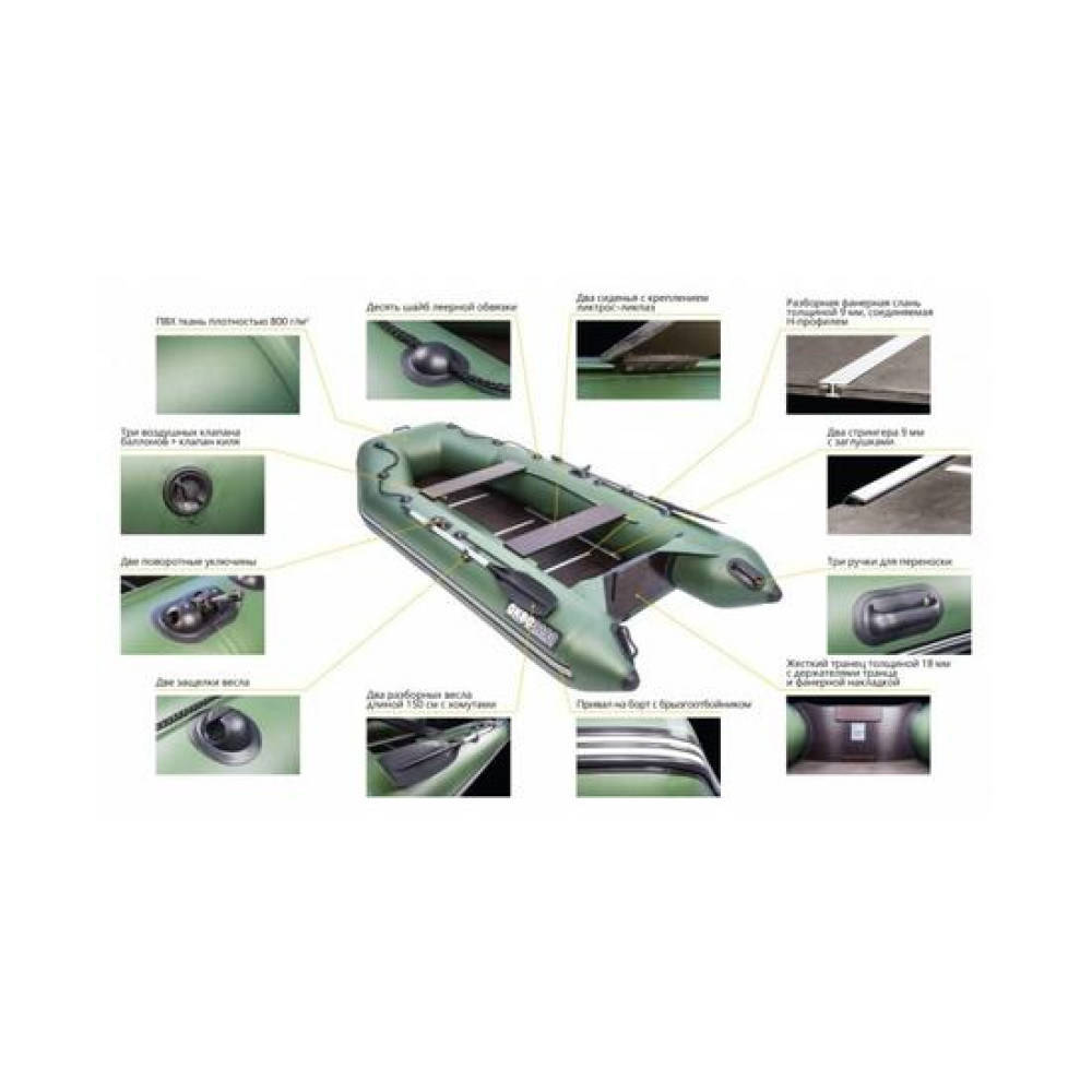 | Дно Каким дном комплектуется лодкаЖесткая слань 9 мм | Кильнет | Количество отсеков3+1 |