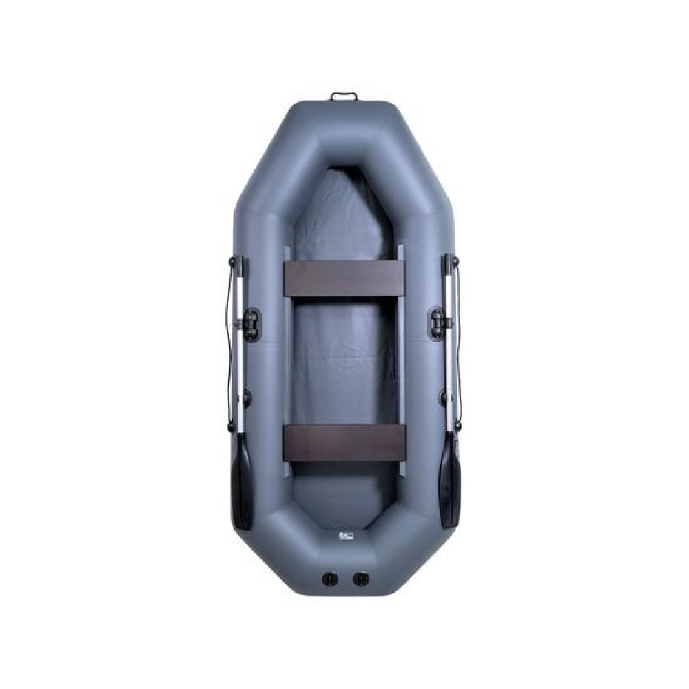 Данная модель комплектуется разборными дюралюминиевыми веслами с пластиковой фурнитурой, длиной 150 см, поворотными уключинами и защелками весел