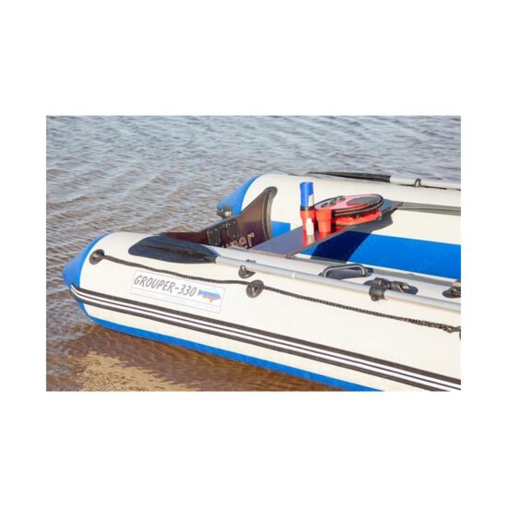 В ней сочетаются ходовые качества лодок НДНД малого размера, простота и удобство эксплуатации лодок серии "комплект эгоиста"Лодка Групер 330 собрана на базе U-образного баллона сложного переменного кроя диаметром 43-45 см., на котором установлен транец толщиной 18 мм., из водостойкой фанеры