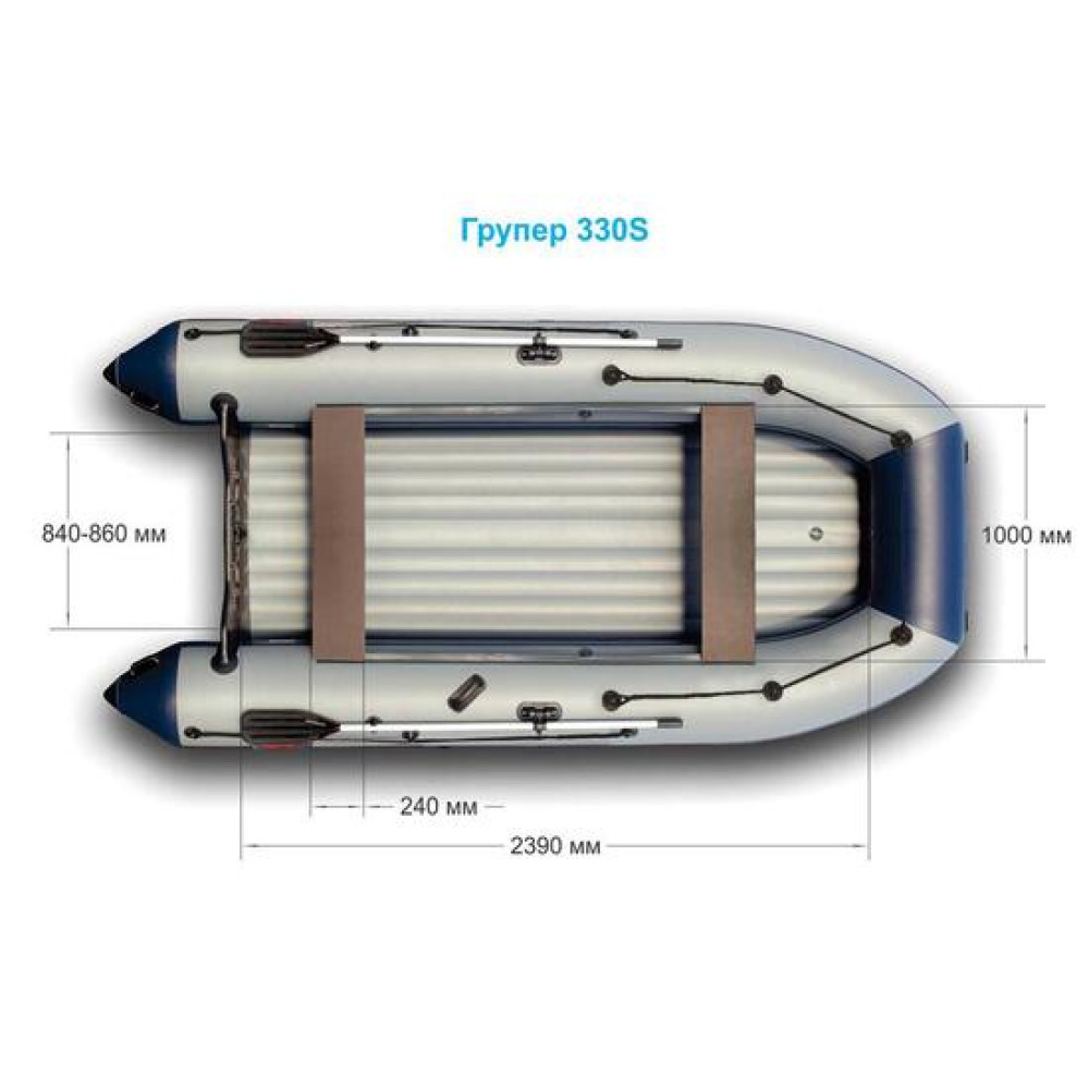 Лодка Групер330S отличается от Групер-330 усиленной транцевой плитой толщиной 27 мм и предназначена для перемещения по воде людей и небольших грузов