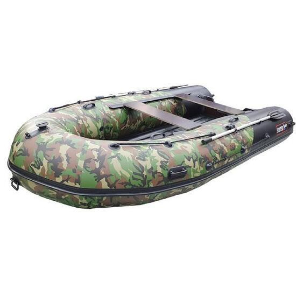 Выпускается в двух расцветах - комбинированном красно/черном цвете и комбинированном черно/камуфлированном цвете Благодаря надувному дну низкого давления НДНД, подготовка лодки для спуска на воду занимает не более 15 минут - достаточно просто накачать надувные отсеки и дно, а так же установить банки и весла