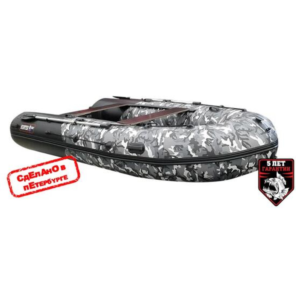 Благодаря надувному дну низкого давления НДНД, подготовка лодки для спуска на воду занимает не более 15 минут - достаточно просто накачать надувные отсеки и дно, а так же установить банки и весла