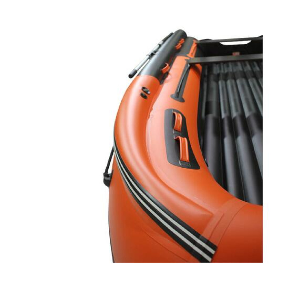 Корпус лодки ПВХ состоит из двух надувных баллонов, разделенных на четыре независимых отсека + дно + 2 фальшборта, таким образом, чтобы в случае выхода из строя одного из отсеков лодка сохраняла положение равновесия