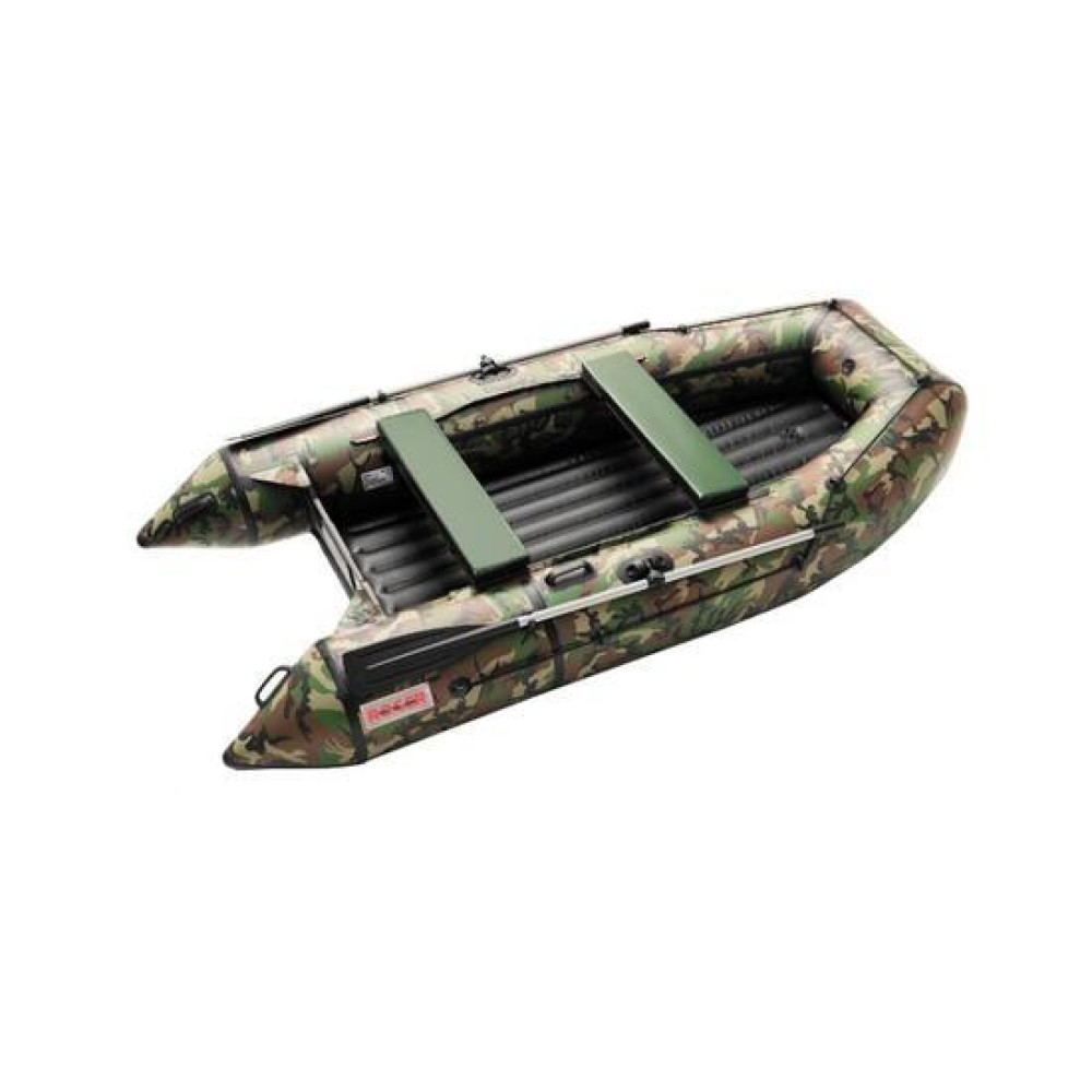 Данная модель комплектуется разборными веслами с пластиковой фурнитурой и поворотными уключинами.Баллон разделен воздухонепроницаемыми перегородками на три независимых отсека + надувной пол таким образом, чтобы в случае выхода из строя одного из отсеков моторно-гребная лодка сохраняла положение равновесия.Передвижные банки (сиденья), которые крепятся к бокам лодки системой "ликтрос-ликпаз", позволяют сидящему в лодке выбрать наиболее удобное положение