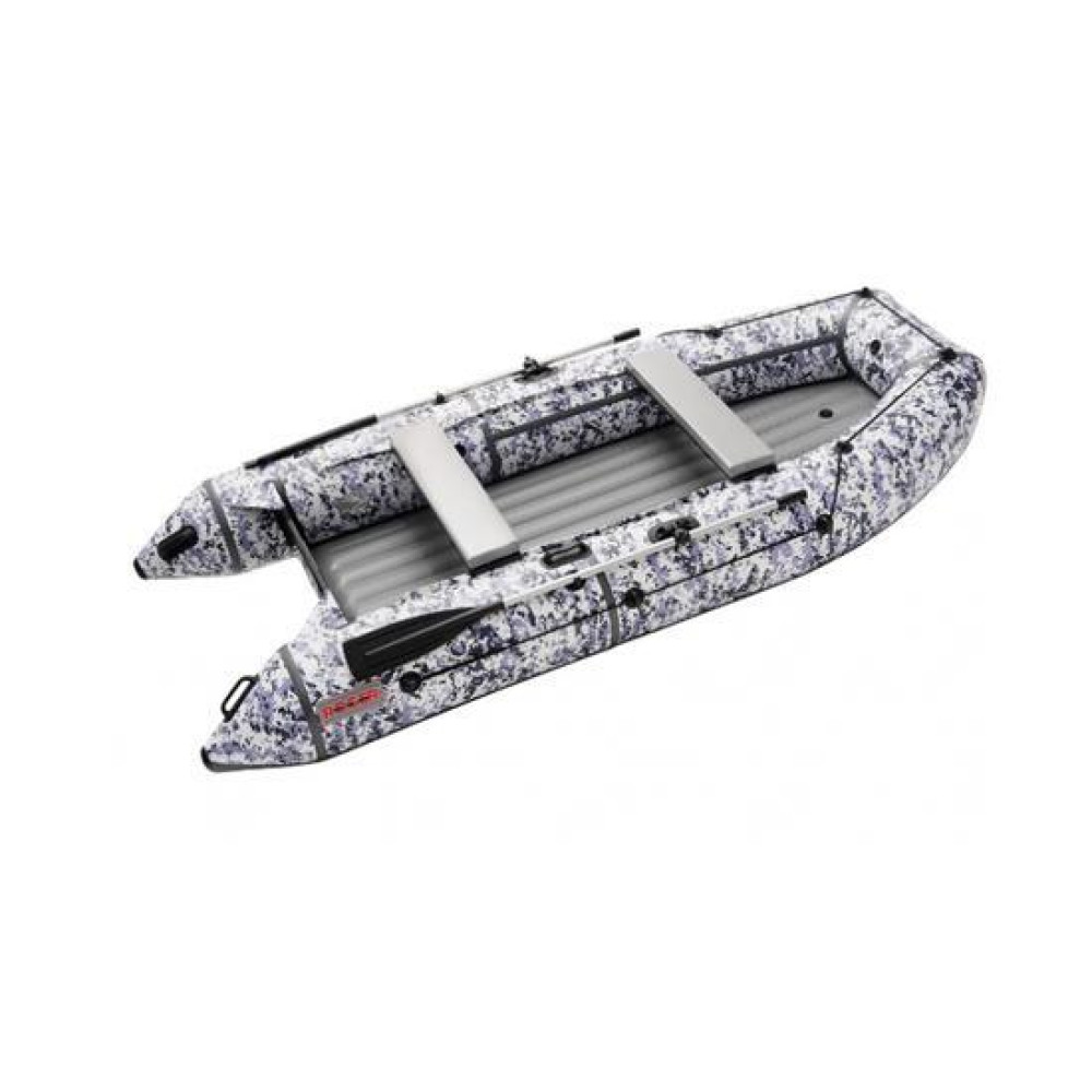 Данная модель комплектуется разборными веслами с пластиковой фурнитурой и поворотными уключинами.Баллон разделен воздухонепроницаемыми перегородками на три независимых отсека + надувной пол таким образом, чтобы в случае выхода из строя одного из отсеков моторно-гребная лодка сохраняла положение равновесия.Передвижные банки (сиденья), которые крепятся к бокам лодки системой "ликтрос-ликпаз", позволяют сидящему в лодке выбрать наиболее удобное положение