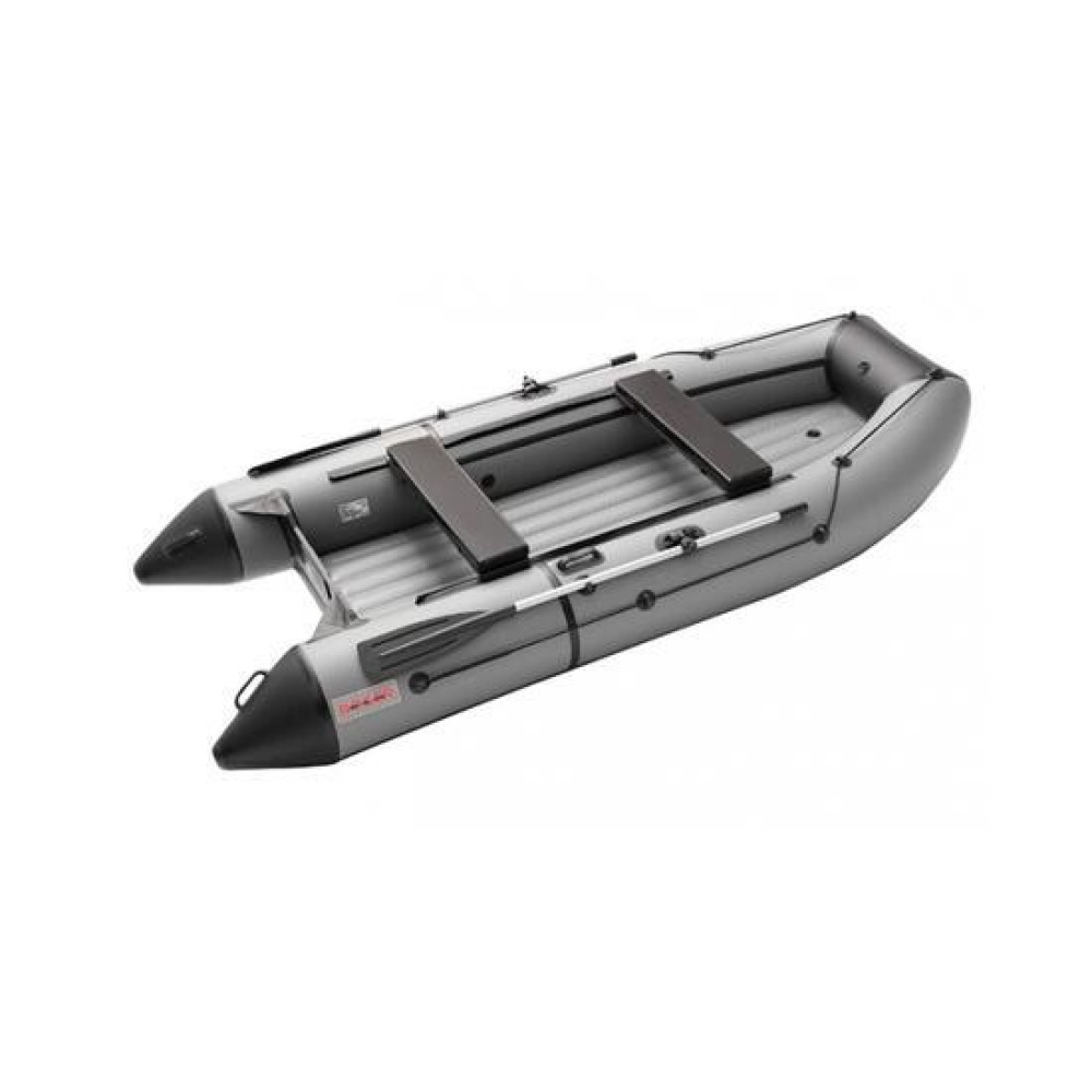 Данная модель комплектуется разборными веслами с пластиковой фурнитурой и поворотными уключинами.Баллон разделен воздухонепроницаемыми перегородками на три независимых отсека + надувной пол таким образом, чтобы в случае выхода из строя одного из отсеков моторно-гребная лодка сохраняла положение равновесия.Передвижные банки (сиденья), которые крепятся к бокам лодки системой "ликтрос-ликпаз", позволяют сидящему в лодке выбрать наиболее удобное положение
