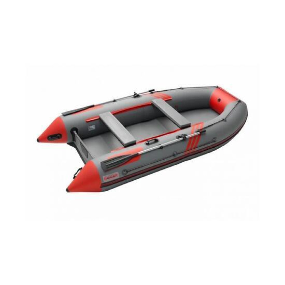 Данная модель комплектуется разборными веслами с пластиковой фурнитурой и поворотными уключинами.Баллон разделен воздухонепроницаемыми перегородками на три независимых отсека + надувной пол таким образом, чтобы в случае выхода из строя одного из отсеков моторно-гребная лодка сохраняла положение равновесия.Передвижные банки (сиденья), которые крепятся к бокам лодки системой "ликтрос-ликпаз", позволяют сидящему в лодке выбрать наиболее удобное положение