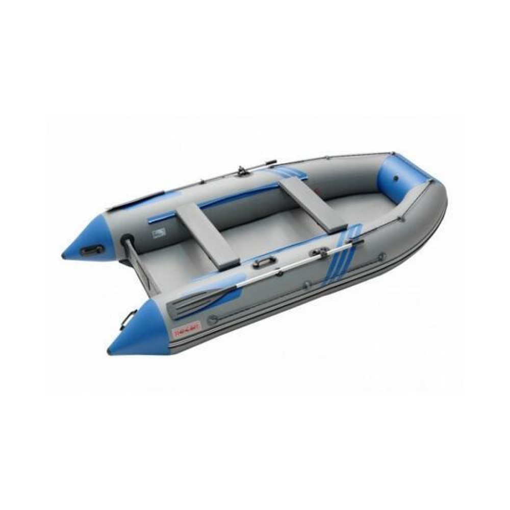 Данная модель комплектуется разборными веслами с пластиковой фурнитурой и поворотными уключинами.Баллон разделен воздухонепроницаемыми перегородками на три независимых отсека + надувной пол таким образом, чтобы в случае выхода из строя одного из отсеков моторно-гребная лодка сохраняла положение равновесия.Передвижные банки (сиденья), которые крепятся к бокам лодки системой "ликтрос-ликпаз", позволяют сидящему в лодке выбрать наиболее удобное положение