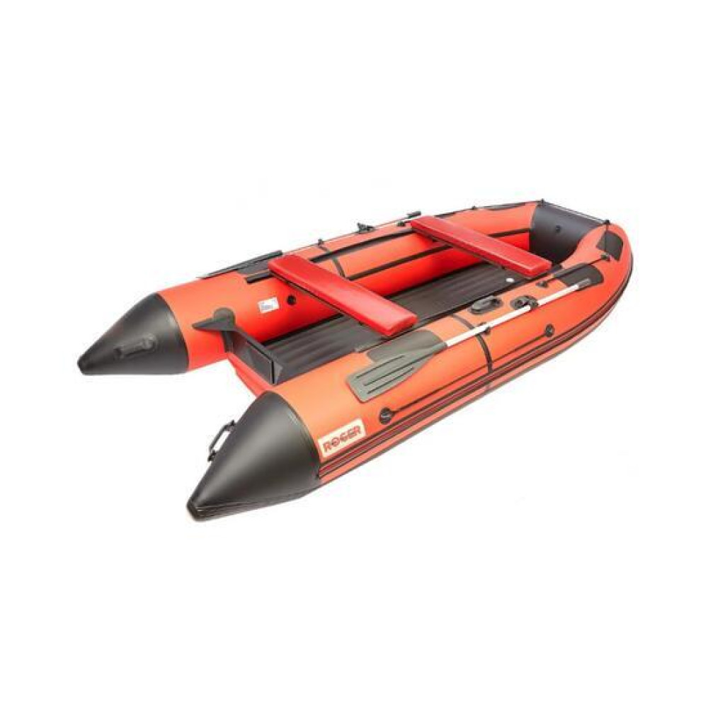 Данная модель комплектуется разборными веслами с пластиковой фурнитурой и поворотными уключинами.Баллон разделен воздухонепроницаемыми перегородками на три независимых отсека + надувной пол таким образом, чтобы в случае выхода из строя одного из отсеков моторно-гребная лодка сохраняла положение равновесия.Передвижные банки (сиденья), которые крепятся к бокам лодки системой "ликтрос-ликпаз", позволяют сидящему в лодке выбрать наиболее удобное положение