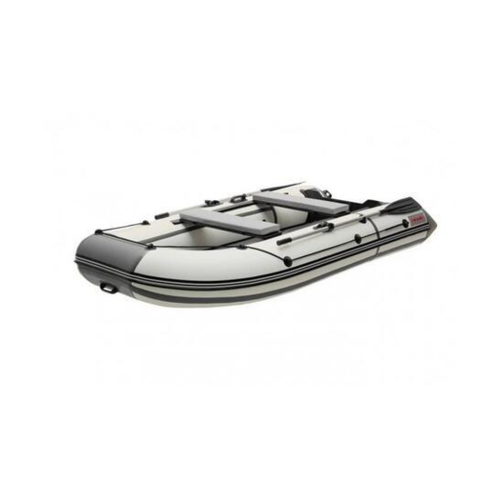 Данная модель комплектуется разборными веслами с пластиковой фурнитурой и поворотными уключинами.Баллон разделен воздухонепроницаемыми перегородками на три независимых отсека + надувной пол таким образом, чтобы в случае выхода из строя одного из отсеков моторно-гребная лодка сохраняла положение равновесия.Передвижные банки (сиденья), которые крепятся к бокам лодки системой "ликтрос-ликпаз", позволяют сидящему в лодке выбрать наиболее удобное положение