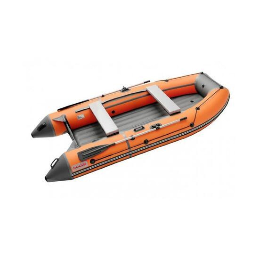Данная модель комплектуется разборными веслами с пластиковой фурнитурой и поворотными уключинами.Баллон разделен воздухонепроницаемыми перегородками на три независимых отсека + надувной пол таким образом, чтобы в случае выхода из строя одного из отсеков моторно-гребная лодка сохраняла положение равновесия.Передвижные банки (сиденья), которые крепятся к бокам лодки системой "ликтрос-ликпаз", позволяют сидящему в лодке выбрать наиболее удобное положение
