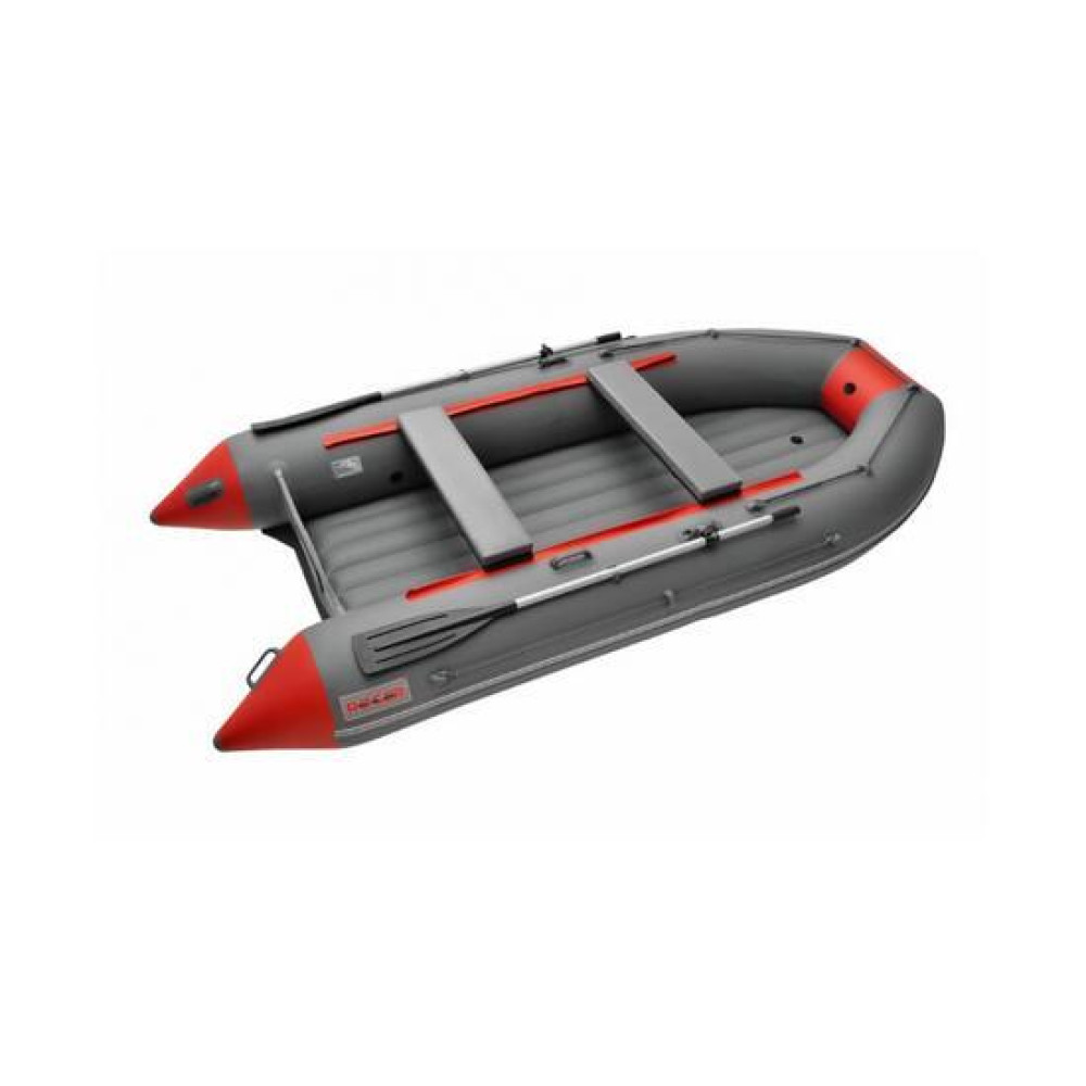Данная модель комплектуется разборными веслами с пластиковой фурнитурой и поворотными уключинами.Баллон разделен воздухонепроницаемыми перегородками на три независимых отсека + надувной пол таким образом, чтобы в случае выхода из строя одного из отсеков моторно-гребная лодка сохраняла положение равновесия.Передвижные банки (сиденья), которые крепятся к бокам лодки системой "ликтрос-ликпаз", позволяют сидящему в лодке выбрать наиболее удобное положение