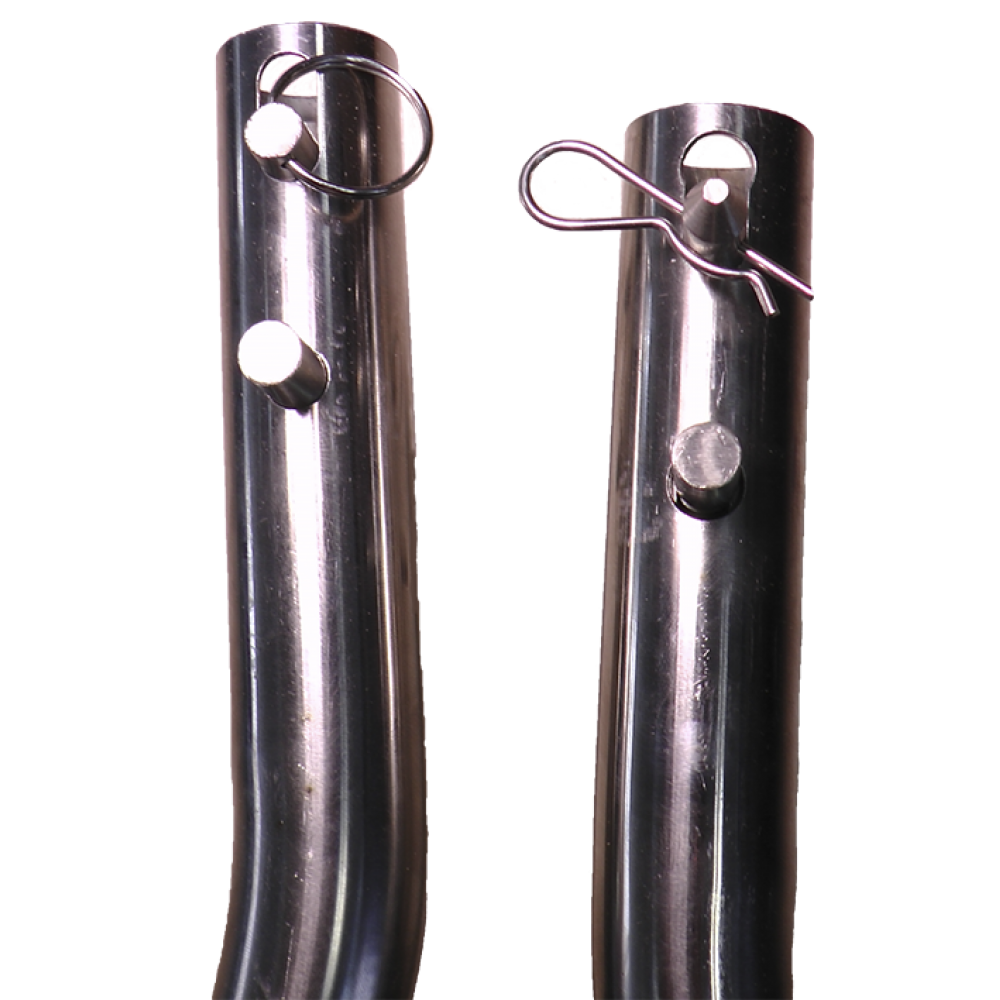 Опоры колес, кронштейны крепления, подвижные детали опоры, болты и гайки выполнены из нержавеющей стали. Диаметр опоры 22 мм, толщина стенки 2 мм.