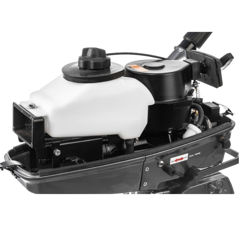- Универсальное применение: мотор идеально подходит для использования на лодках от 2 до 3 метров в рыбалке, охоте или просто для отдыха на воде. Он обладает одноцилиндровым двигателем объемом 79,6 см3 и мощностью 4 л. с. Небольшой встроенный бак объемом 1,4 л хватит на час работы на полном ходу.