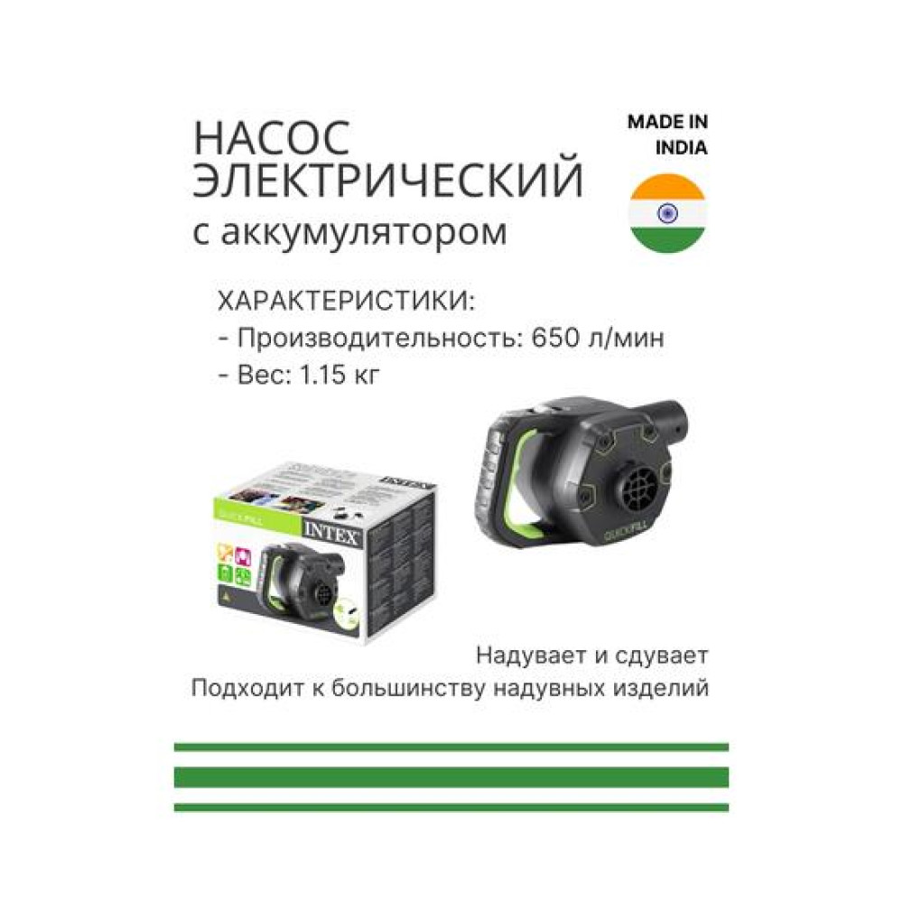 С помощью данного насоса можно накачивать или сдувать любые надувные изделия производства Intex (кровати, матрасы, бассейны, лодки, плавательные принадлежности, игровые центры)