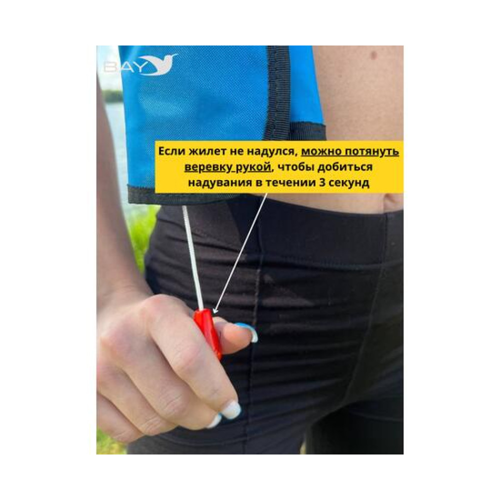 Если он не надулся, вы можете потянуть веревку рукой с правой стороны, чтобы добиться надувания в течении 3 секунд