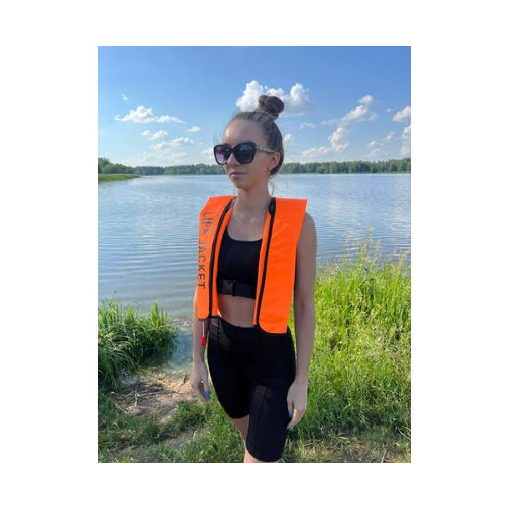 Для аварийного надувания жилета предусмотрена трубка для надувания ртом