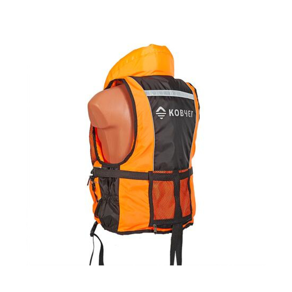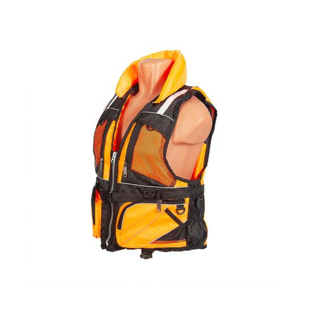 Жилет премиум-сегмента имеет много красивых и функциональных карманов, а также пластиковых полуколец (для экстрактора, для ключа зажигания и прочих важных предметов), крупную прочную молнию на центральной застежке, небольшой воротник (защищает шею от ветра и холода и увеличивает плавучесть)